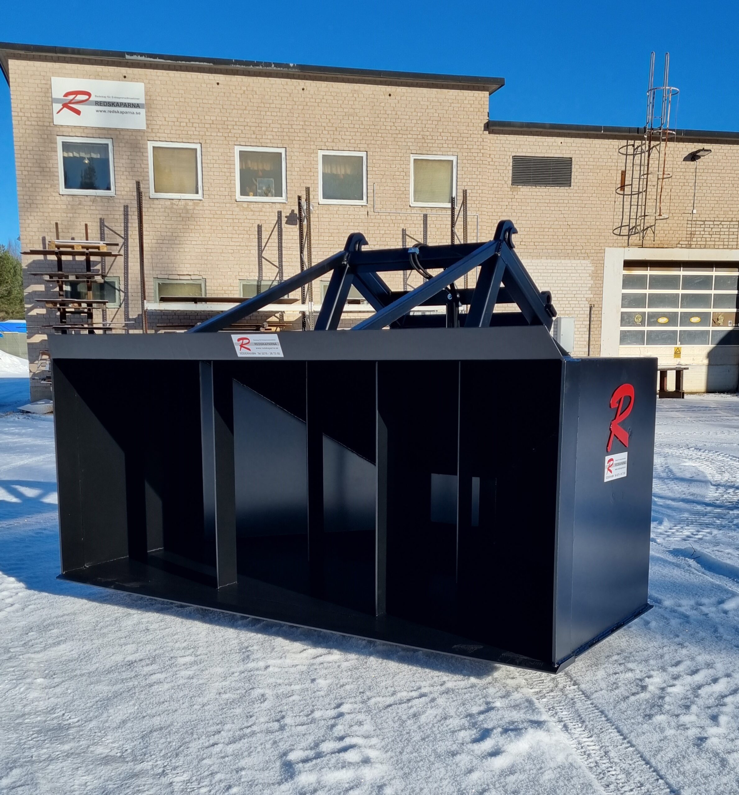 - Bulkskopa 1250: Perfekt för jord och gruslastning, med en volym på 1250 liter och raka sidor för att förhindra att material hakar upp sig.